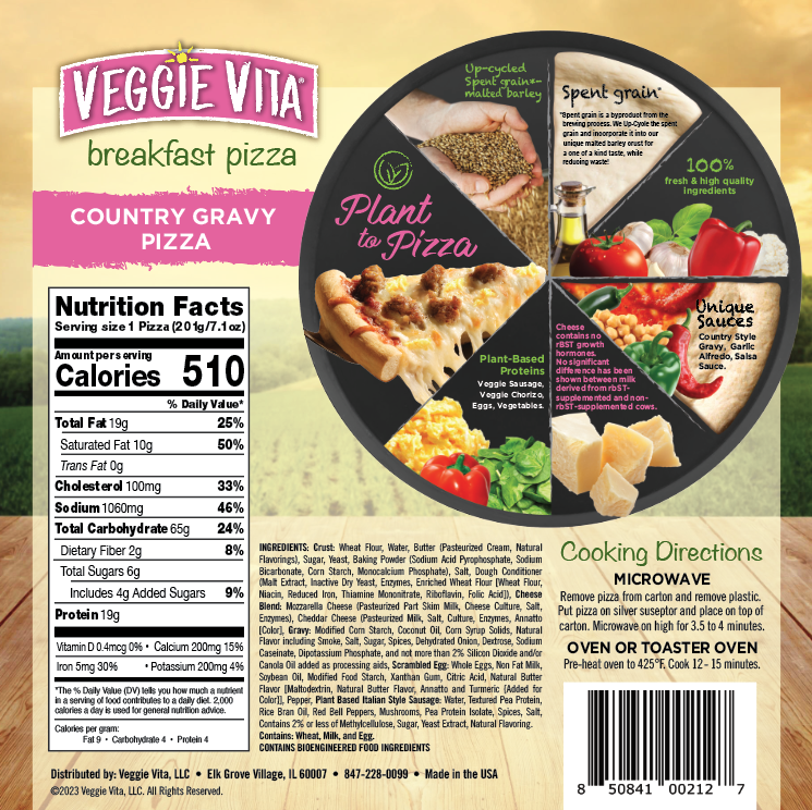 Veggie Sausage, Scrambled Eggs, Mozzarella Cheese, Cheddar Cheese and Country Gravy Sauce and our Biscuit Style Crust!